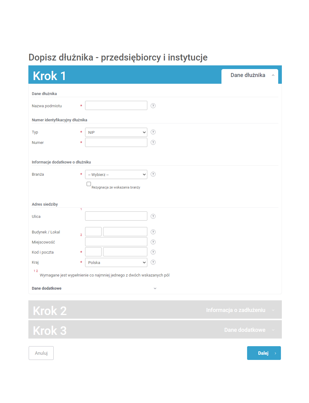 - Wpis dłużników z wykorzystaniem Panelu Klienta KRD: Widok Panelu Klienta